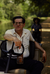 NPS employees, Tom Hoke, driving an energy saving machine in Chesapeake and Ohio Canal National Historical Park with Anne Brooks walking behind him.