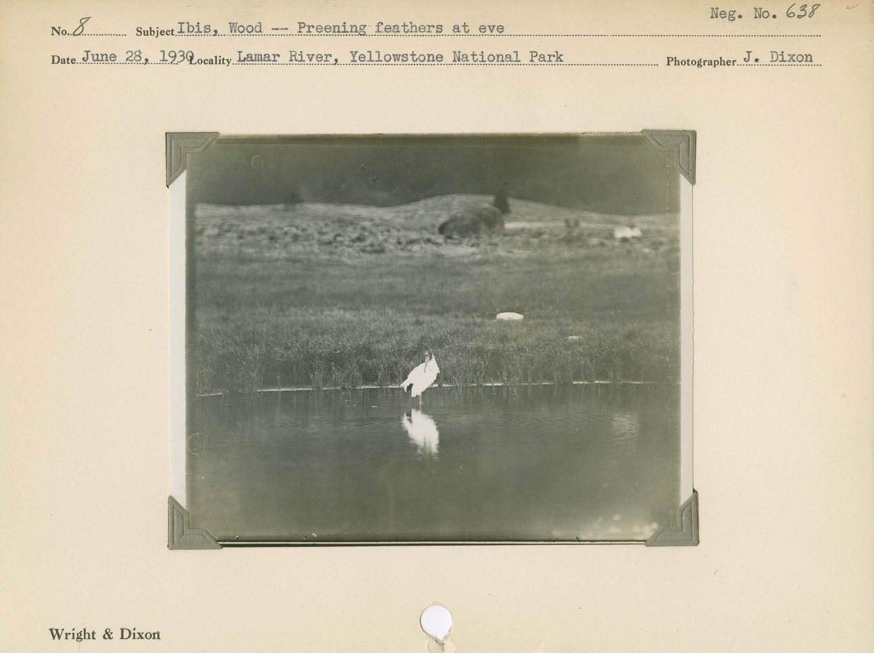 Ibis, Wood -- Preening feathers at eve. Locality: Lamar River, Yellowstone National Park. Negative #: 638