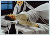 Woman nurse assisting man in hospital bed.
