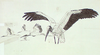Wood storks in flight.
