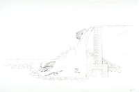 Illustration depicts a partial cutaway of the sea lamprey barrier used on Miners River