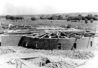 The new kiva, showing roof beams, Aztec Ruins National Monument.