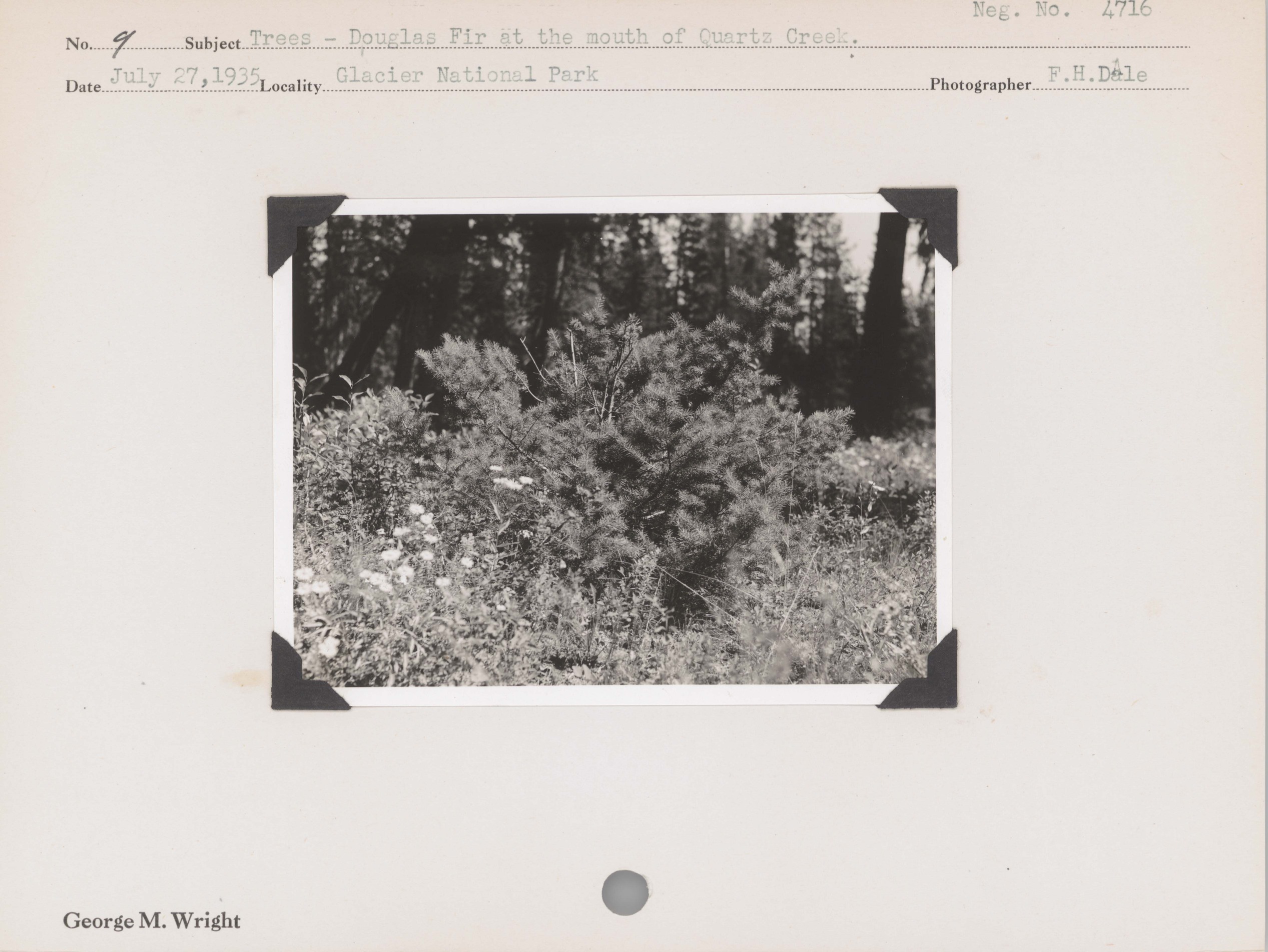 Trees: Douglas Fir at mouth of Quartz Creek. Negative #: 4716. Locality: Glacier National Park.