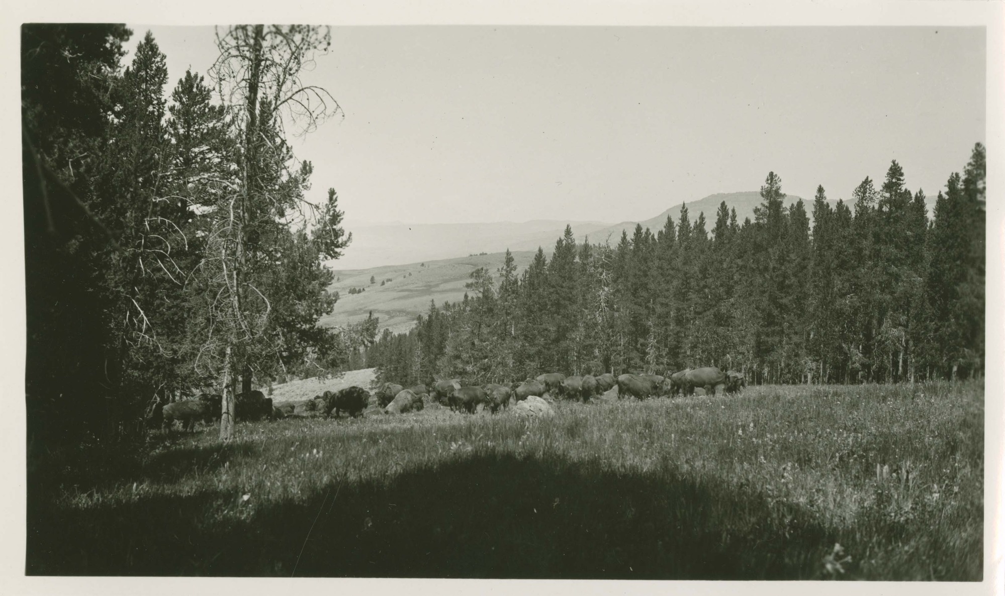 Buffalo [Bison] on Summer Range, Baggley. Locality: Yellowstone National Park. Negative #: 9001-3. Location of Negative: Yellowstone National Park. [This information comes from the reverse of the envelope for this negative number.].