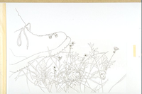 Meadow damage: hiker's boot descending on meadow grass, wildflowers and a nest of baby mice.
