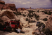 NPS employees repairing a jeep in Silver Staircase in Canyonlands National Park.
