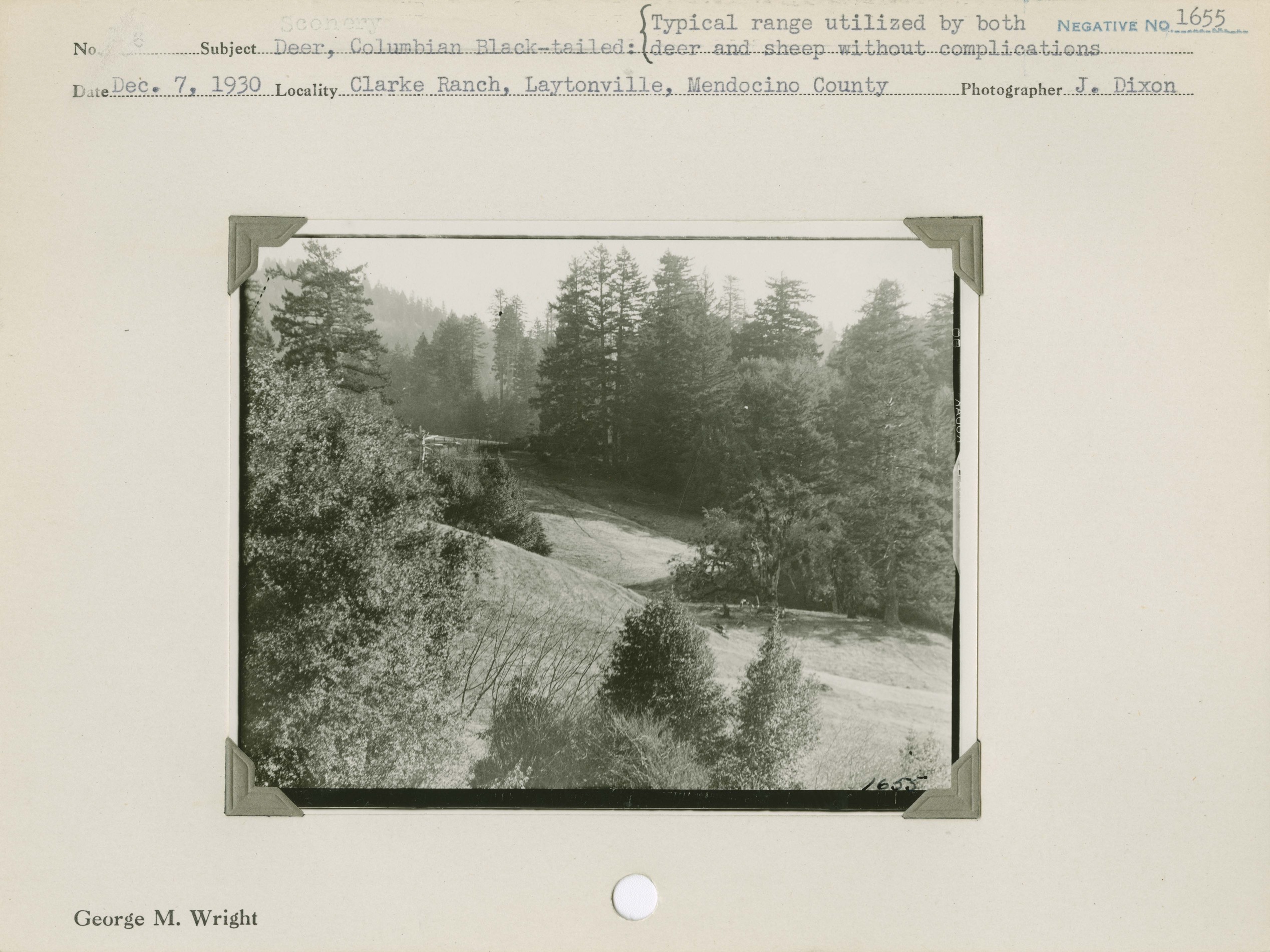 Deer, Columbian Black-Tailed: Typical range utilized by both deer and sheep without complications. Locality: Clarke Ranch, Laytonville, Mendocino County. Negative: 1655.