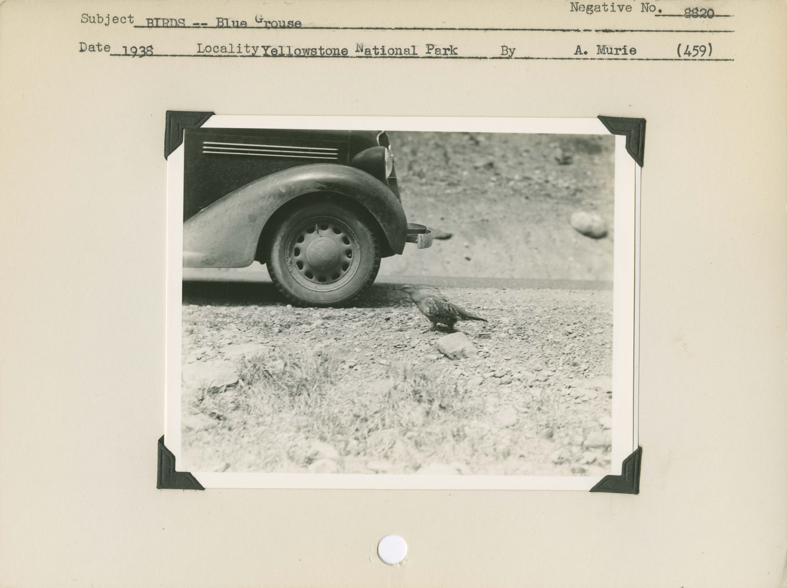Birds -- Blue Grouse. Locality: Near Norris, Yellowstone National Park. Negative #: 8820. [Other photos in this series have a date of 05/06/1938]