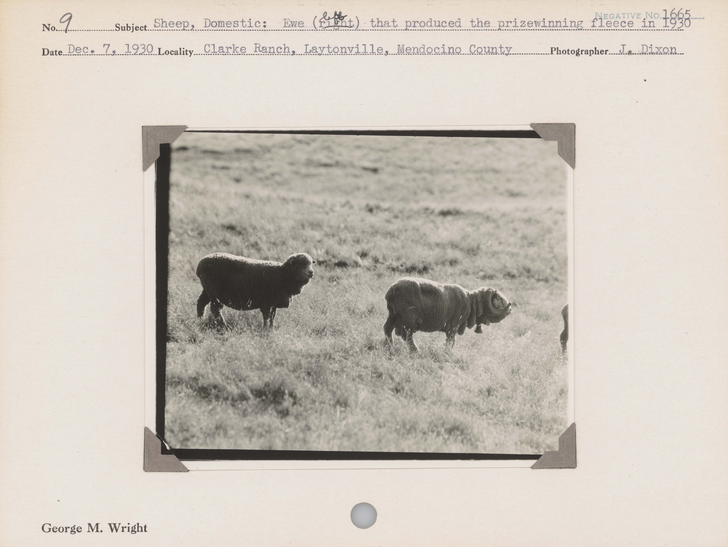Sheep, Domestic--Ewe (left) that produced the prize winning fleece in 1930. Locality: Clarke Ranch, Laytonville, Mendocino County, California. Negative #: 1665