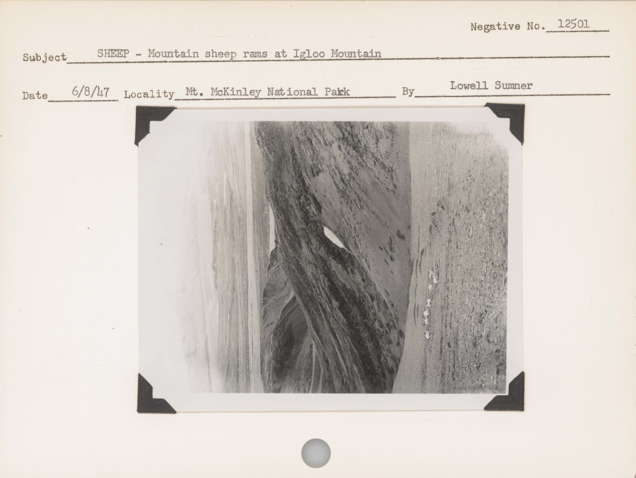 Sheep--Mountain sheep rams at Igloo Mountain. Locality: Mount McKinley Park [Denali National Park & Preserve]. Negative #: 12501