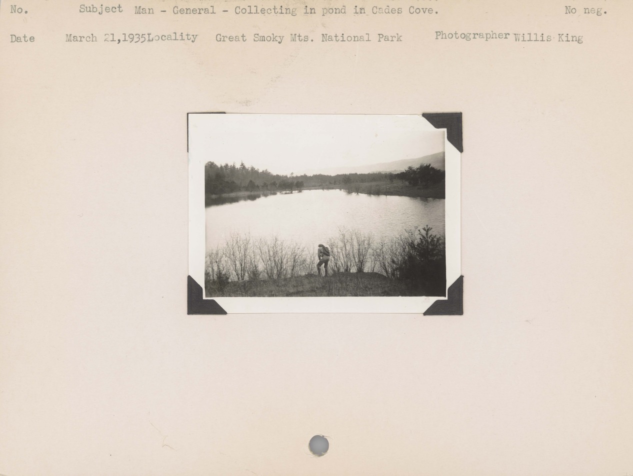 Man--General--Collecting in pond in Cades Cove. Locality: Great Smoky Mountains National Park. No negative on file