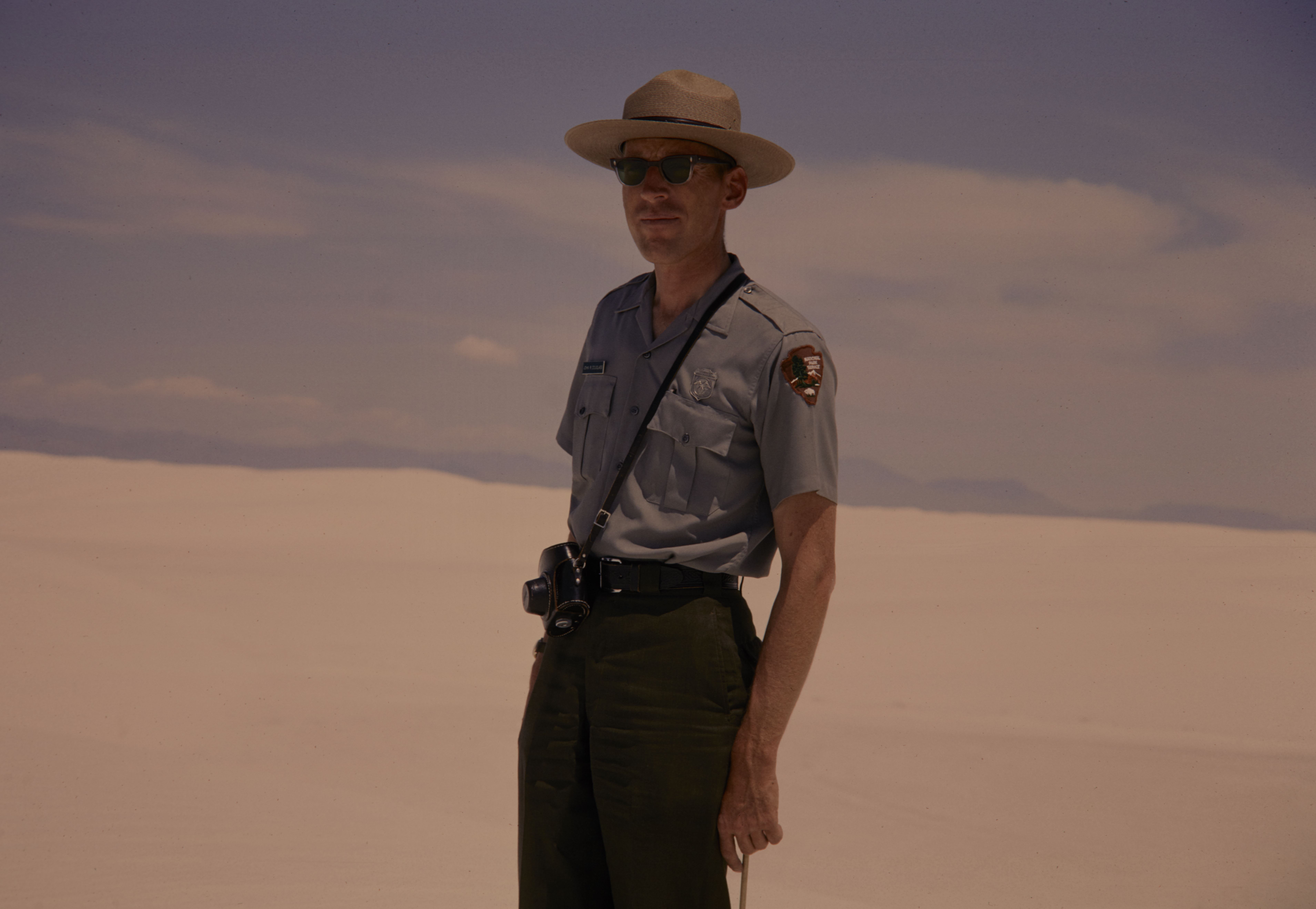 NPS employee John Douglass standing on top of a sand dune in White Sands National Park.