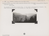 Scenery: Looking north from Eagle Rocks. The mountain to the left is Woolly Tops. To the right is Greenbriar Pinnacle. The white line across the top of the picture is a thin band of clouds. Negative #: ECW 6. Locality: Great Smoky Mountains National Park (proposed), Tennessee.