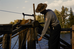 NPS employee pulling a rope tighter in Grand Teton National Park.