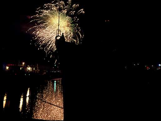 Fireworks at the Charlestown Navy Yard. Boston National Historical Park. Image dates to the 1990s (exact year unknown).