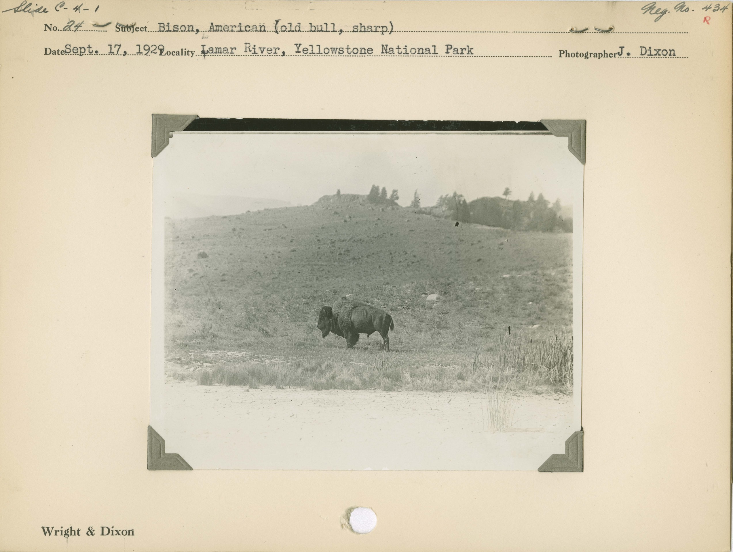 Bison, American (old bull, sharp). Locality: Lamar River, Yellowstone National Park. Negative #: 434.
