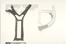 Split panel depicts the silhouette of a Naval live oak showing the areas of the tree used for a ship's structural member (knee) and a diagram of the ship part (knee) and ship construction with the timber.