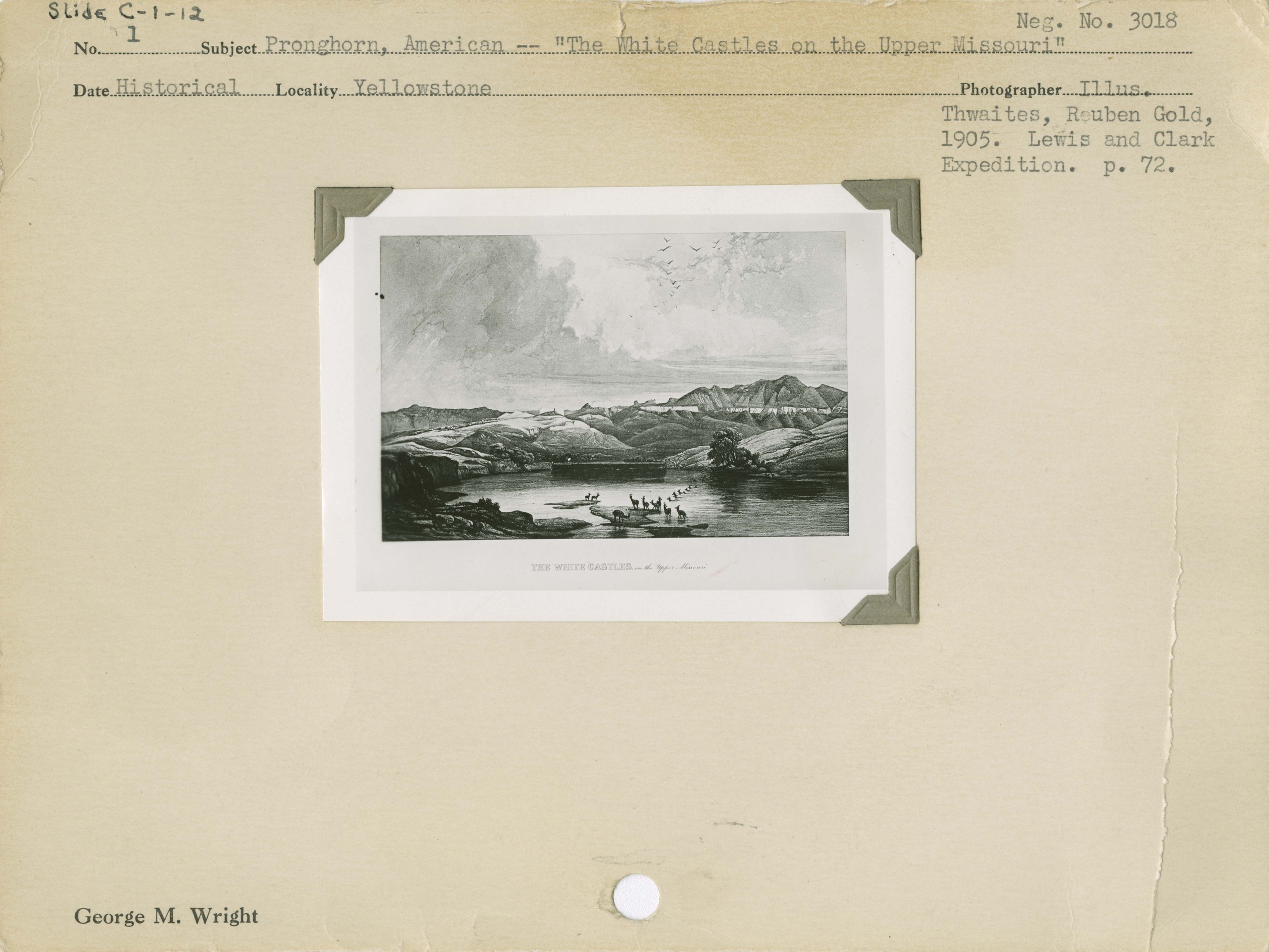 Pronghorn, American – “The White Castle on the Upper Missouri”. Locality: Yellowstone National Park. Negative #: 3018. Illustrated Thwaits, Reuben Gold, 1905 Lewis and Clark Expedition. P. 72. [Date specified as “historical”]