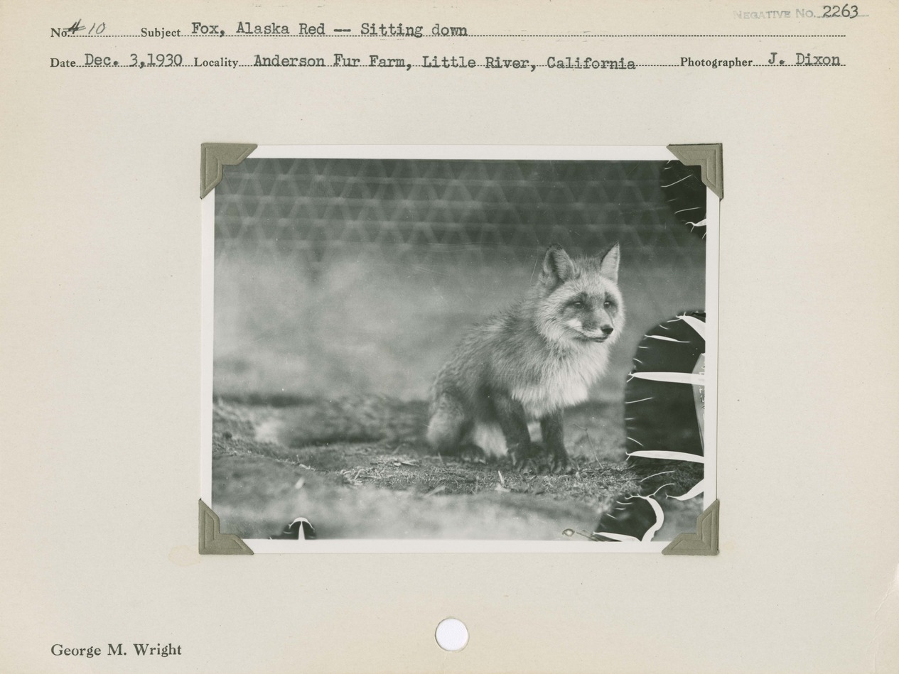Fox, Alaska Red – Sitting down. Negative #: 2263. Locality: Anderson Fur Farm, Little River, California.