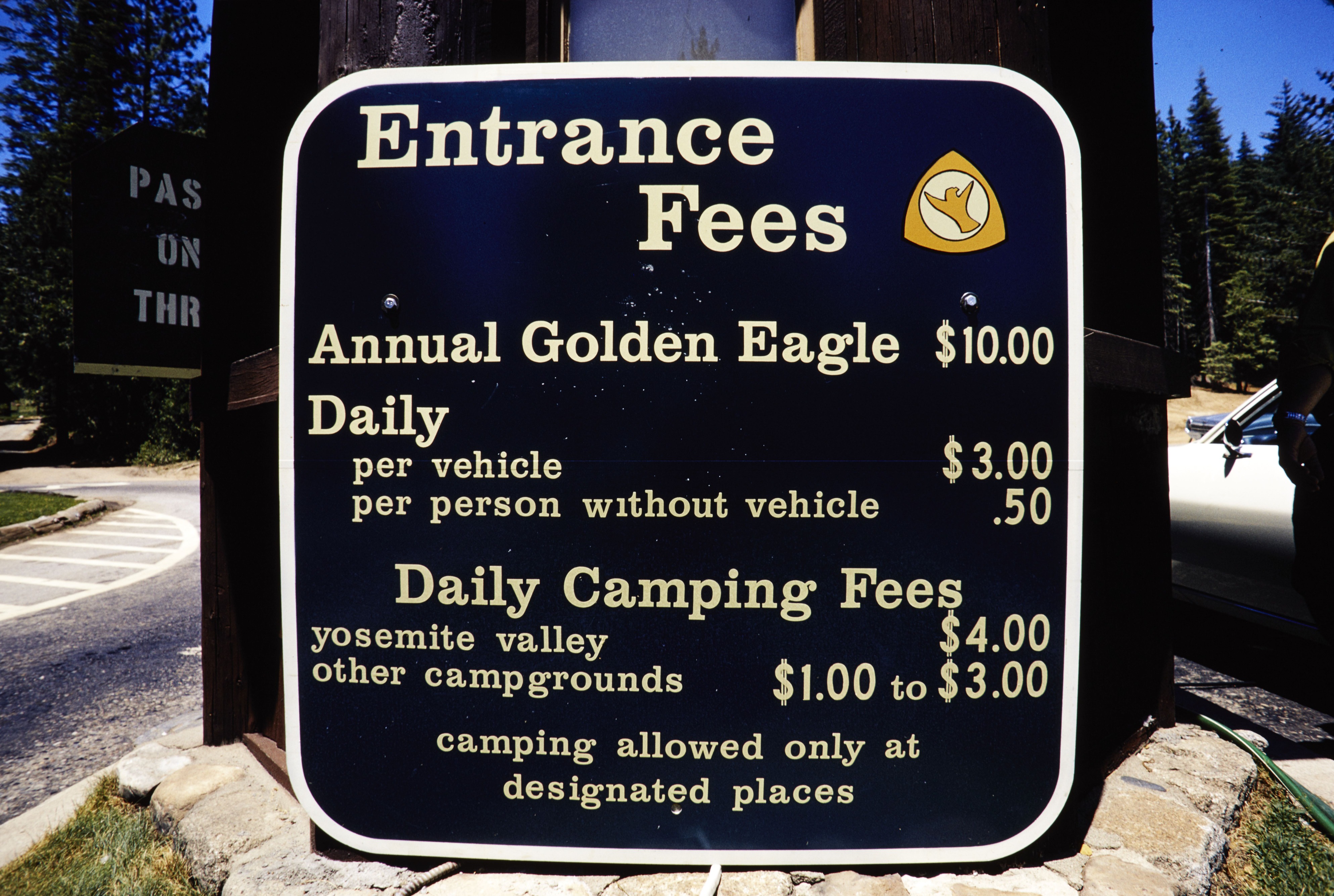 Fee Collection. Entrance fee sign at Yosemite National Park.