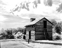 A reconstructed cabin located near the site of Booker T. Washington's birthplace at Booker T Washington National Monument. In such a log building as this, Booker T. Washington spent the first years of his life.