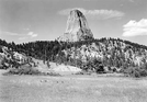 Devils Tower from south as seen from proposed cabin campsite. Rock Formation (columnar structure) in Devils Tower National Monument.