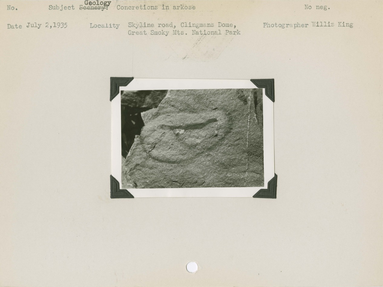 Geology: Concretions in arkose. Locality: Skyline Road, Clingmans Dome, Great Smoky Mountains National Park. No negative on file