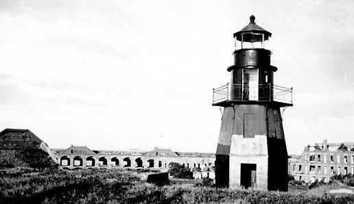 Old lighthouse (1876 iron harbor light), showing interior of Fort Jefferson. Dry Tortugas National Park (formerly Fort Jefferson National Monument).