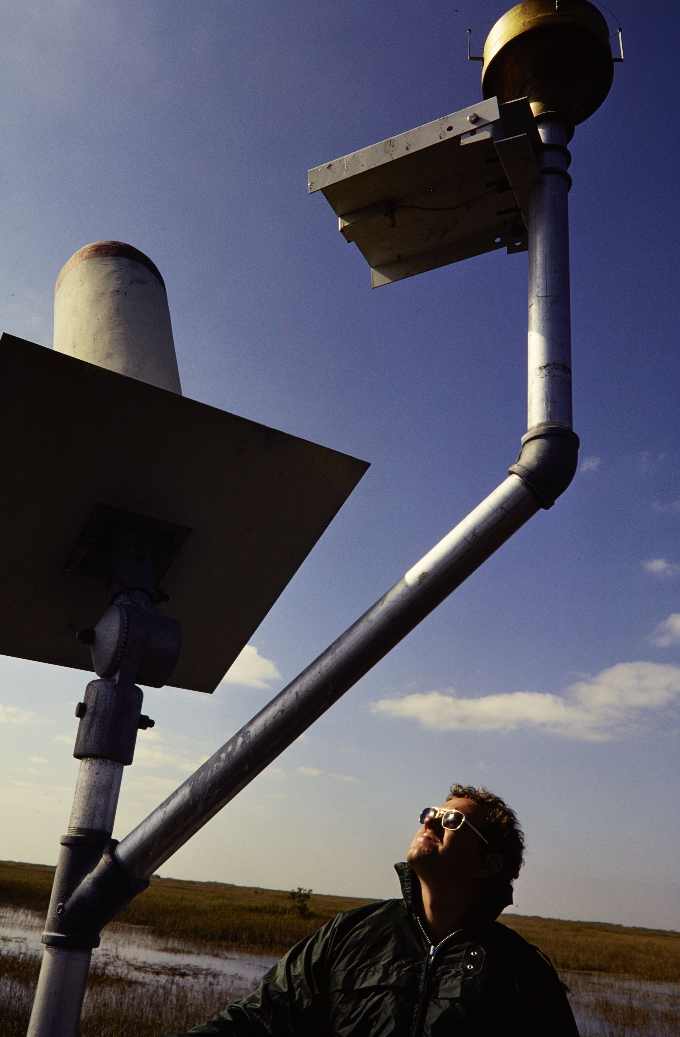 NPS employee looking at a machine in Everglades National Park.