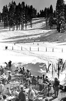 Skiers at Badger Pass, Yosemite National Park.