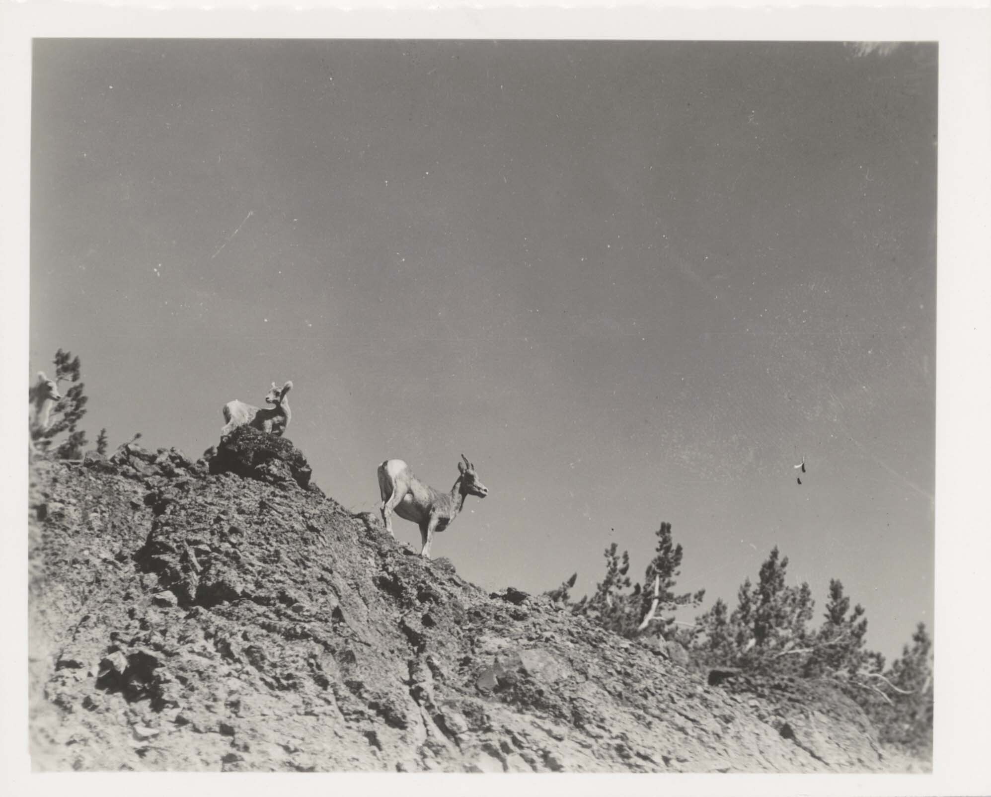 Mammals--Bighorn Sheep--Lamb and ewe. Locality: Mount Washburn, Yellowstone National Park. Negative #: 8636
