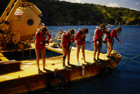 Divers getting ready to jump into the ocean during the Tektite II Project in Virgin Islands National Park