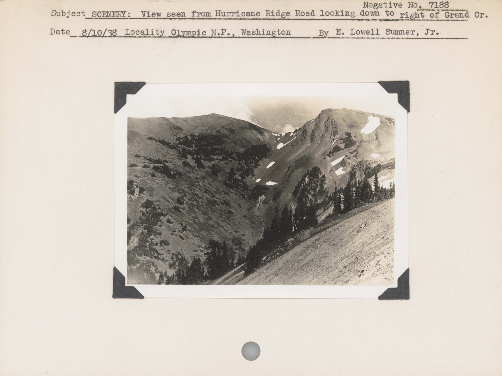 Scenery – View from Hurricane Ridge Road looking down to right of Grand Creek. Negative#: 7188. Location: Olympic National Park, Washington.