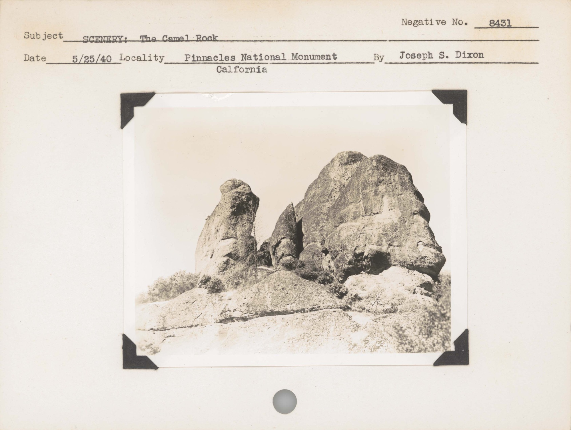 Scenery – The Camel Rock. Negative#: 8431. Location: Pinnacles National Monument, California.