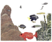 a Star coral, Blue chromis, juvenile Blue Head wrasse, Fire coral, Yellow damselfish, adult Blue Head wrasse, Three Spot damselfish, and a Big-eye.