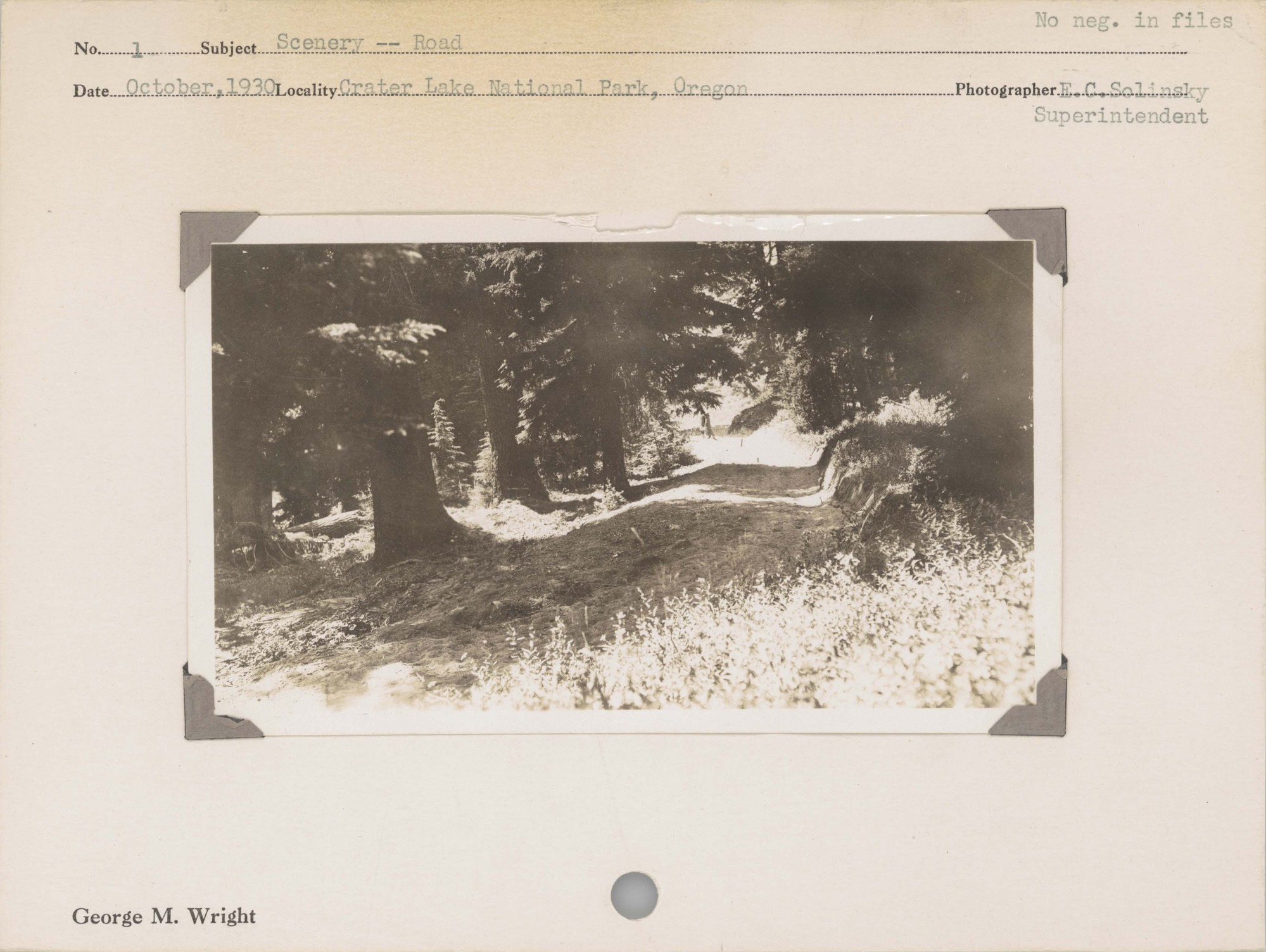 Scenery – Road. No negative on file. Locality: Crater Lake National Park, Oregon.