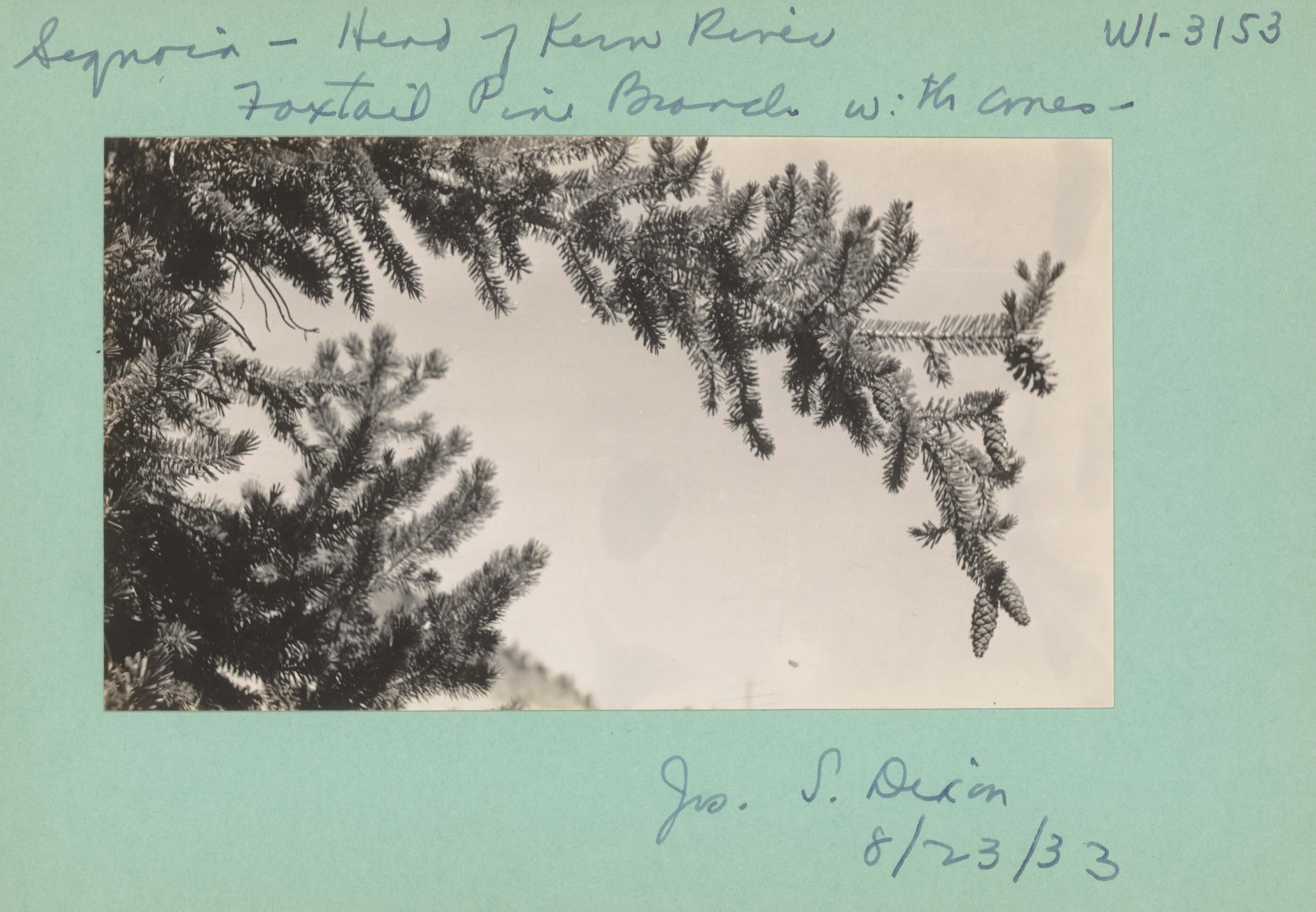 Foxtail Pine branch with cones. Negative #: 3153. Locality: Sequoia National Park – Head of Kern River.