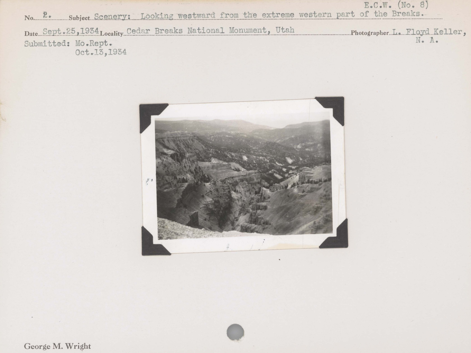 Scenery – Looking westward from the extreme western part of the Breaks. Negative #: E.C.W. (#8). Locality: Cedar Breaks National Monument, Utah.