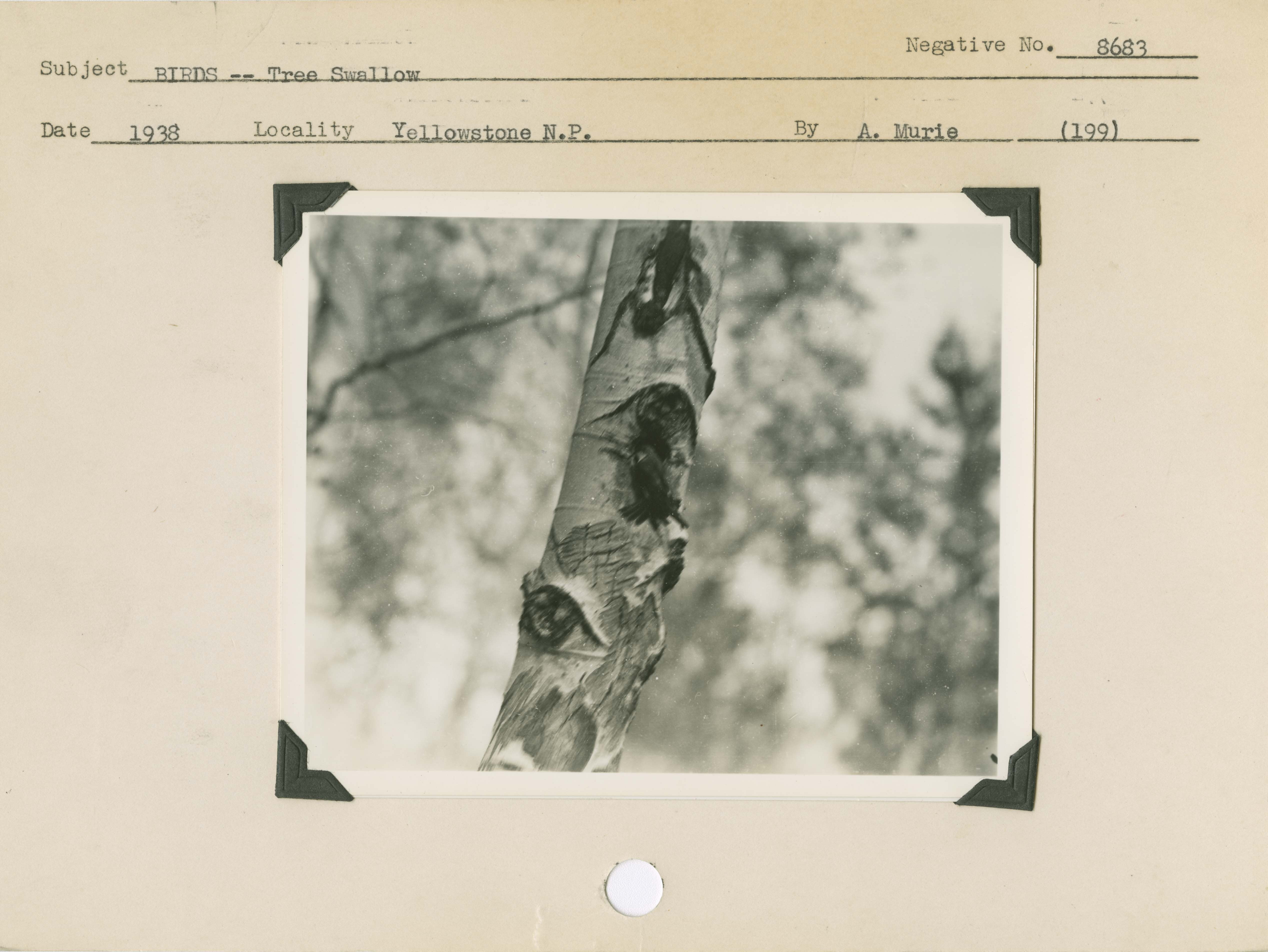 Birds -- Tree Swallow. Locality: Tower Falls, Yellowstone National Park. Negative #: 8683