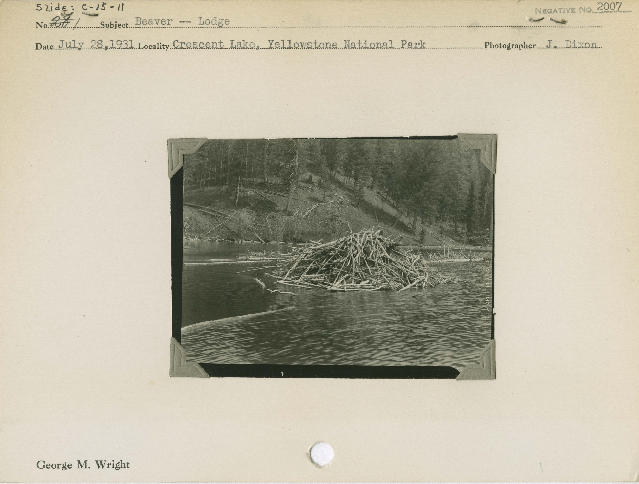Beaver – Lodge. Locality: Old Gardiner Road, Yellowstone National Park. Negative #: 2007.