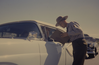 NPS employee talking to visitors inside their cars at Theodore Roosevelt National Park.