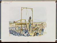 U.S. Marines watching John Brown walking the steps to the gallows.