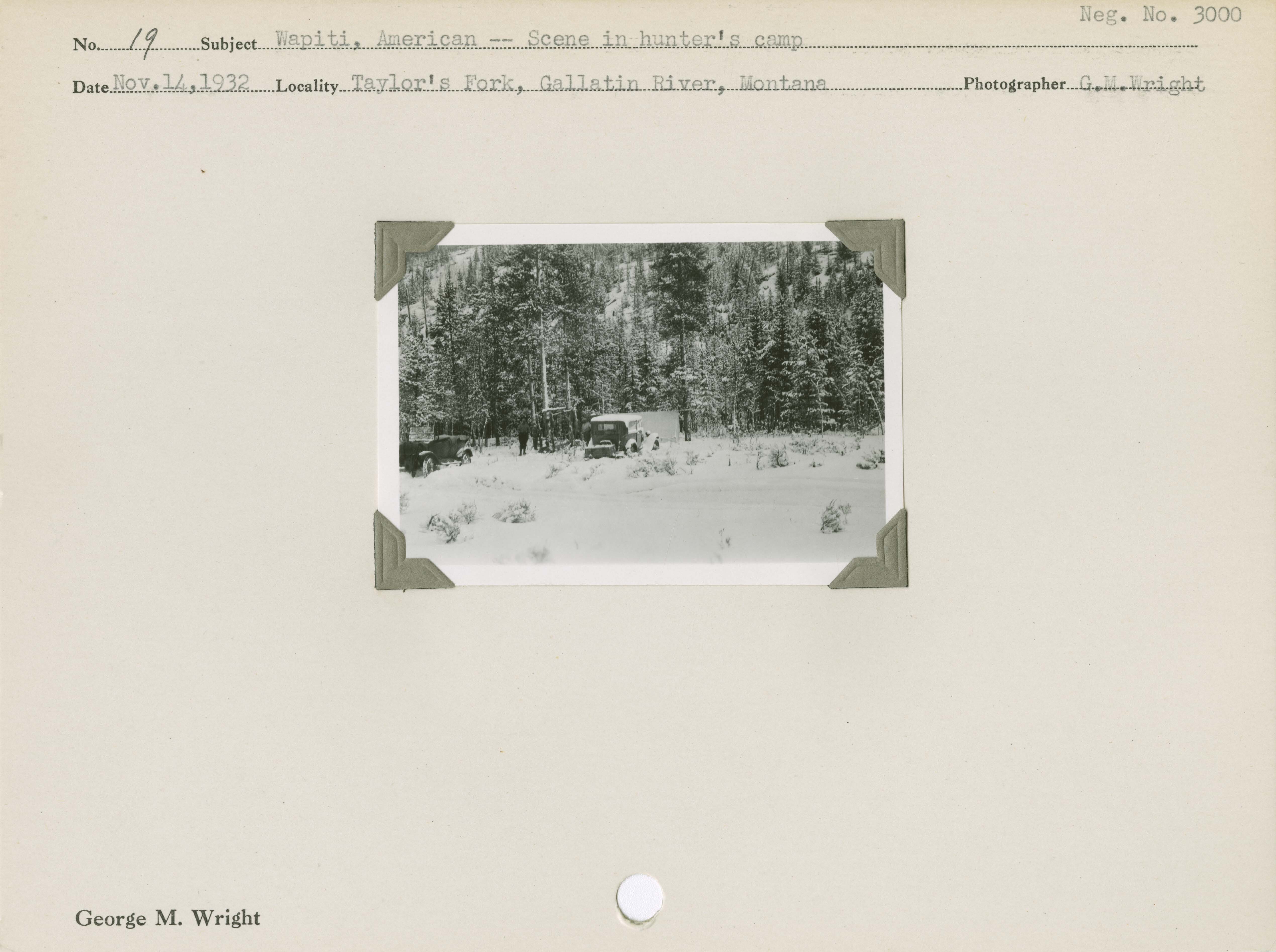 Wapiti, American [Elk] – Scene in hunter’s camp. Negative #: 3000. Locality: Taylor’s Fork, Gallatin River, Montana.