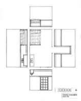 Interpretive Period: 1770-1810. Illustration depicts the floor plan of Room 102, the small room, with exploded wall elevations.