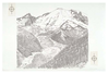 Base art showing Mount Rainer with an overlay depicts various climbing routes to the summit.