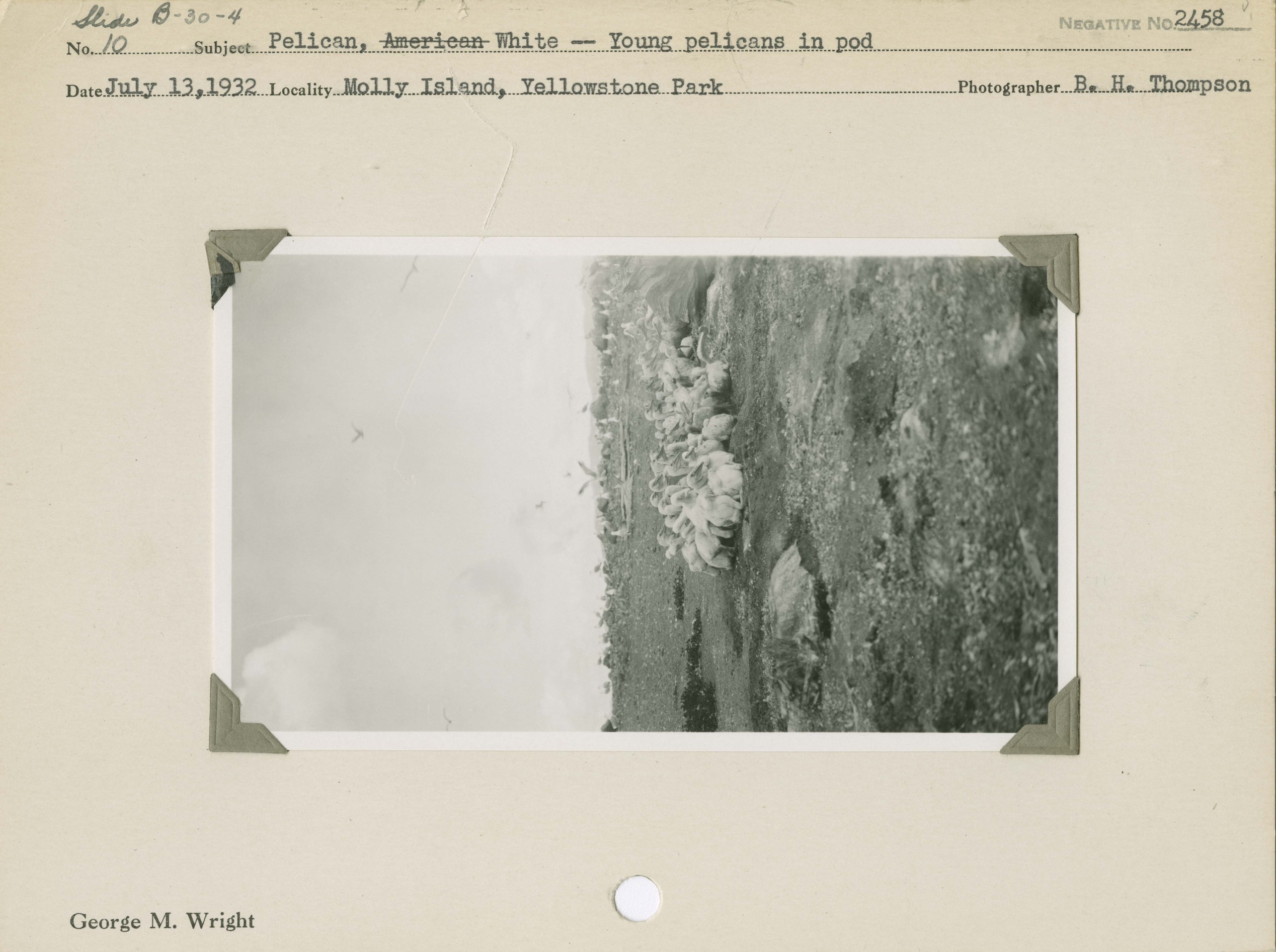 Pelican, White -- Young pelicans in pod. Locality: Molly Island, Yellowstone National Park. Negative #: 2458
