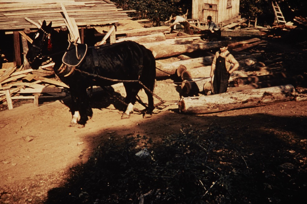 Horse pulling logs in Blue Ridge near Shenandoah National Park.