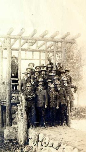 Superintendent's Conference, Yosemite National Park, 1922. W. B. Lewis, Daniel Hull, Billy Nelson, Ansel F. Hall an John R. White in front row. Second Group Shot.