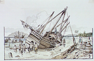 "Pinta's" rudder repair at Las Palmas, Grand Canary.