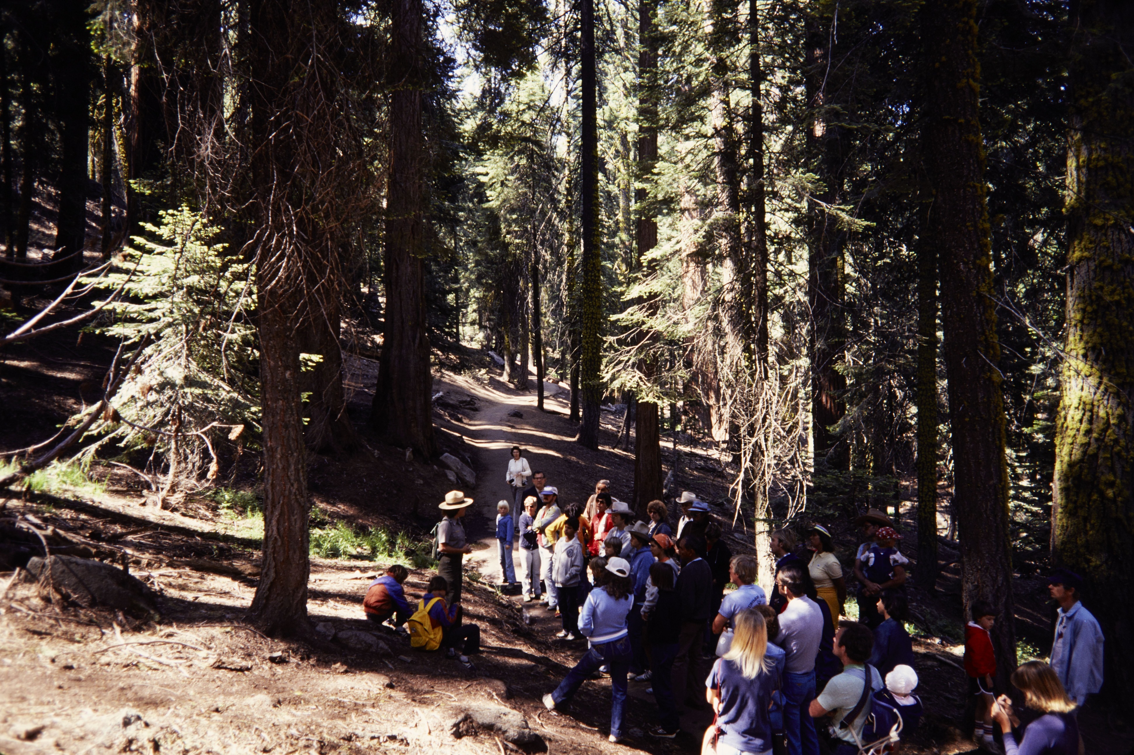 NPS employee talking to visitors in Sequoia and Kings Canyon National Parks.
